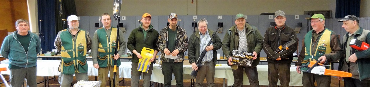 Als herbeigesehnten Höhepunkt des Tages gab es, nach der Siegehrung, eine Verlosung von Sponsorengeschenken unter den Teilnehmern. Alles Sachpreise von hiesigen Firmen oder Privatpersonen ohne die eine solche Verlosung in dieser Form nicht möglich wäre. Darunter waren nützliche Gegenstände zur Vorbereitung, Ausübung und Nachbereitung der Jagd.