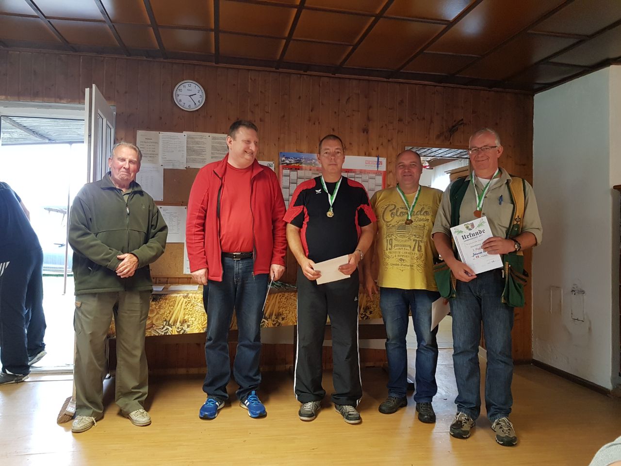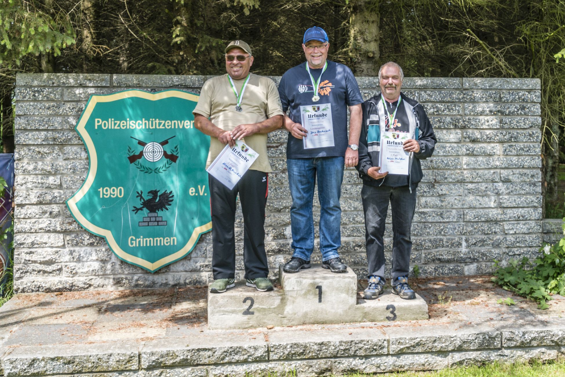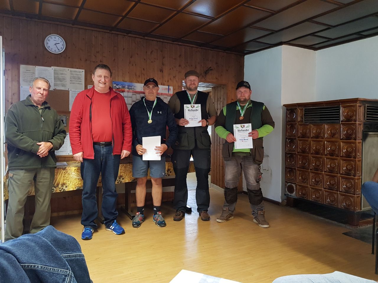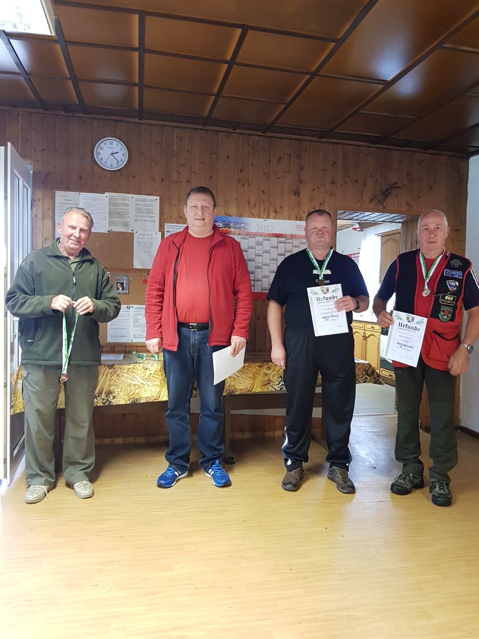 Aber kommen wir nun zu den Siegern. Landesmeister wurde mit 339 Punkten der Weidgenosse Henning Gruß. Er gewann mit 194 Punkten auch die Einzelwertung Büchse. Es folgten in der Gesamtwertung die Weidgenossen Frank Mayer (334 Punkte) und Karl Poltier (330 Punkte).