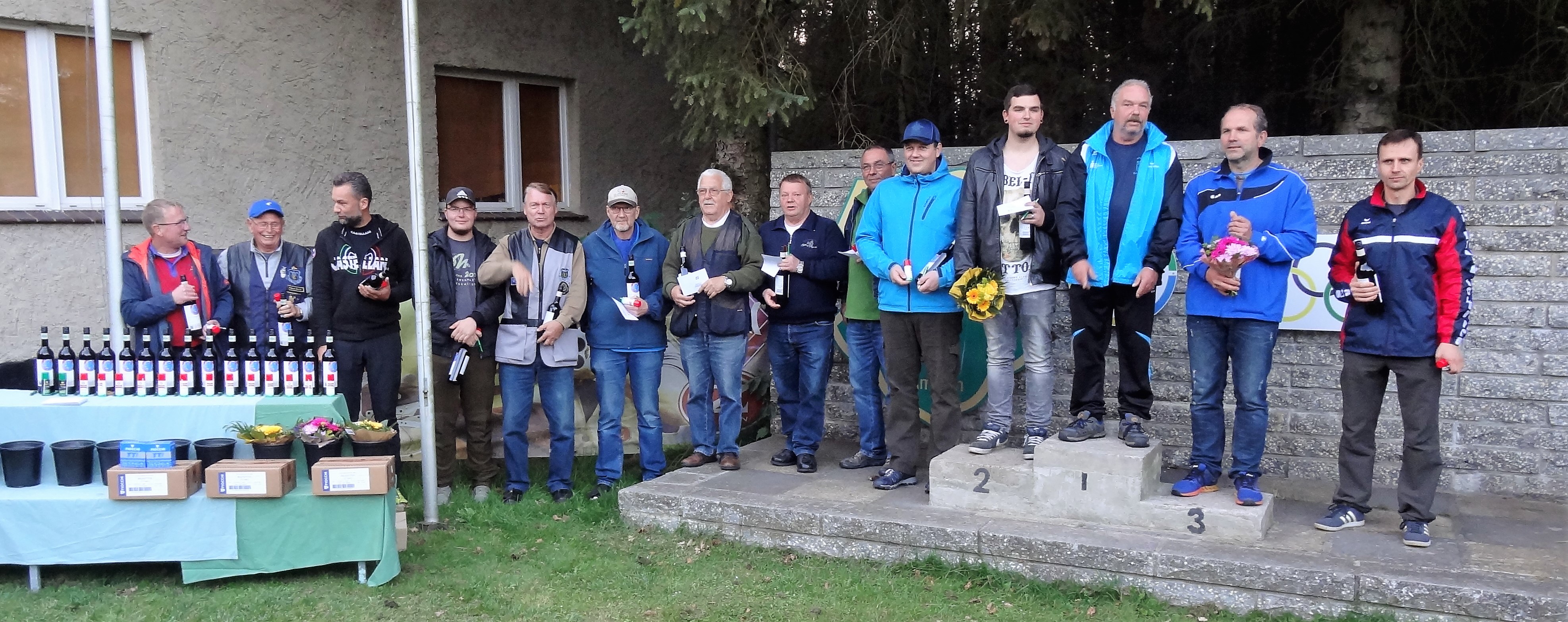 Parallel zu dem Trapschützen wurde gegen 09:30 Uhr auch auf dem Skeetstand der Wettkampf durch den Sportreferenten für Wurfscheibe Mike Stöcker eröffnet. Die geringere Anzahl der Starter begünstigte hier ein schnelleres Gesamtergebnis. Die Siegerehrung erfolgte schon während beim Trap noch geschossen wurde. Genau nach Zeitplan, gegen 18:00 Uhr, fanden sich dann alle zur Bekanntgabe der Platzierungen vor dem Ehrenhain des PSV ein.